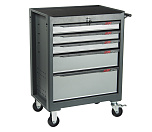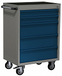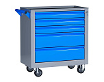 Тележка инструментальная 5 ящиков. Максимально возможная нагрузка на тележку: 300 кг. Максимально возможная нагрузка на ящик: 25 кг. Выдвижные ящики оснащены нескользящими вкладками. В комплекте предусмотрен верхний коврик из АБС, предназначенный для удобного хранения различных мелких деталей.