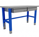 Стол бестумбовый поставляется в разобранном виде (4 места). Нагрузка на столешницу до 600 кг. Стандартный цвет: корпус - серый глянец RAL 7030, ящики и двери тумб - синий RAL 5017. Размеры: 855х1200х700мм. Вес: 40 кг.