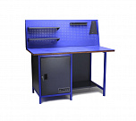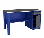 Верстак однотумбовый поставляется в разобранном виде. Нагрузка на столешницу до 600 кг. Стандартный цвет: корпус - серый глянец RAL 7030, ящики и двери тумб - синий RAL 5017. Размеры:855x1400x700 мм. Вес: 76 кг.