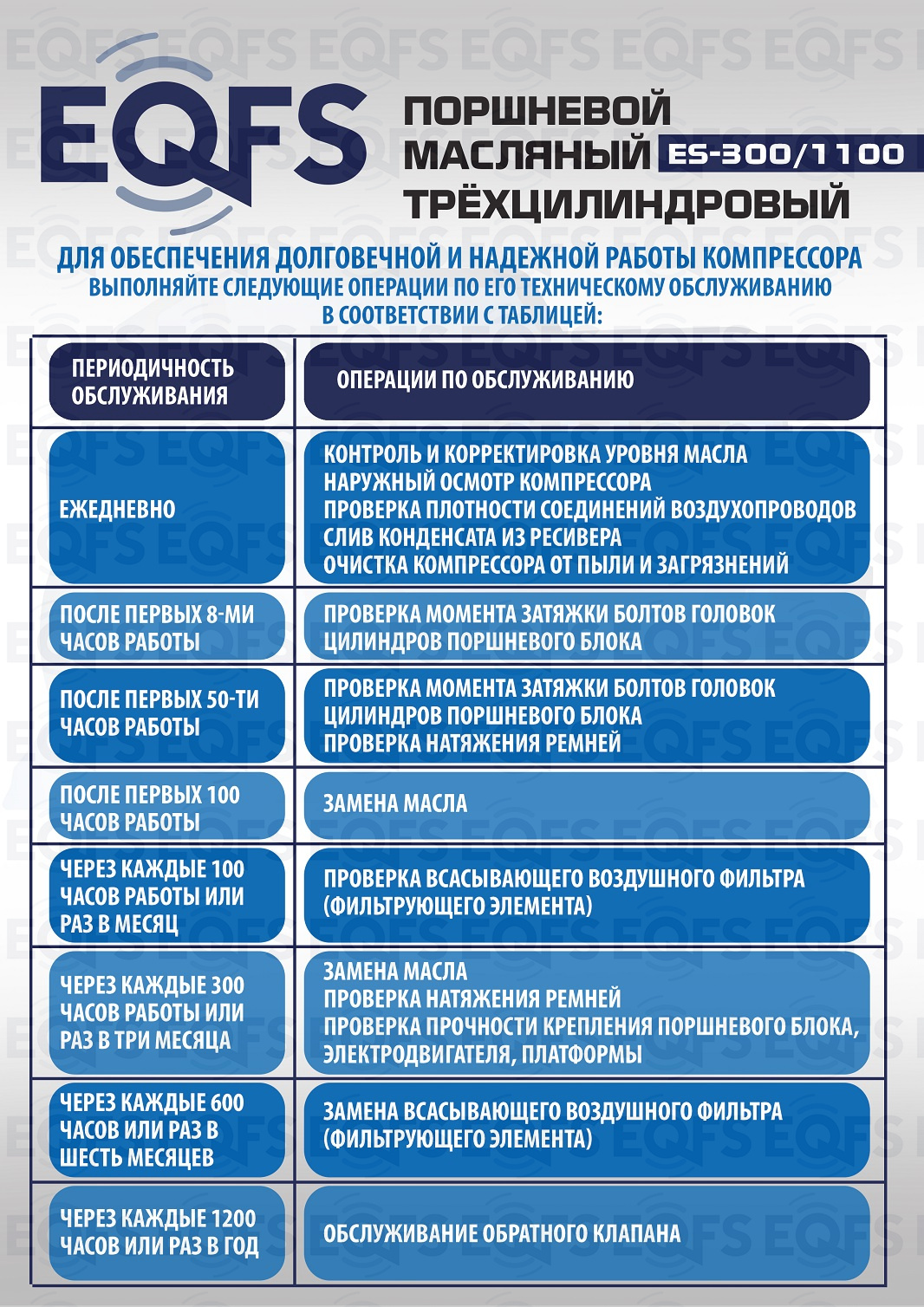 Технические особенности компрессор поршневой ES-300/1100 (5 кВт):