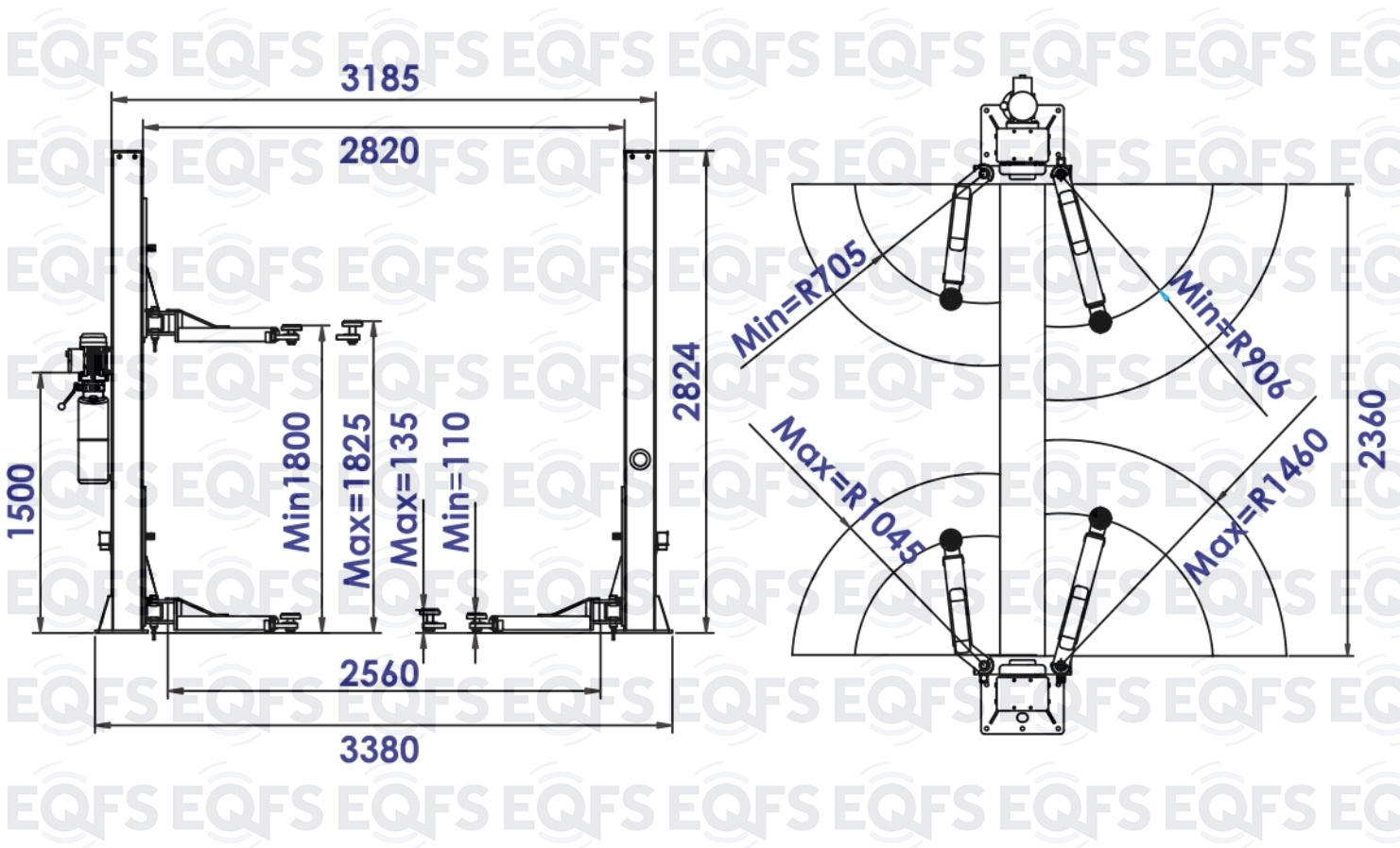 Гарантия до 36 мес. Усиленная конструкция подъемных кареток - толщина до 8 мм. Срок эксплуатации подъемника – не ограничен. Поднимает ВСЁ – от «Оки» до «LC200» Съем со стопоров ручкой на одной колонне (экономия времени). В комплекте проставки для рамных авто. Ширина проезда – 2560 мм. Высота подъёма h=110÷1825 мм. 220/380В. г/п 4 тонны.