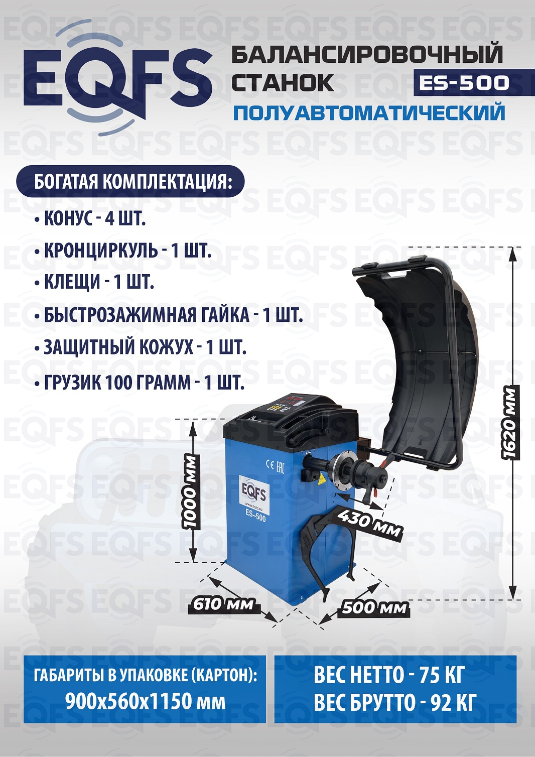 Европейская линейка балансировочных станков для легковых авто и «Газелей. Полуавтомат. Лазерная указка места установки грузика. Режимы работы: STANDART, STATIC, ALU1, ALU2, ALU3. Автокалибровка. Режим оптимизация дисбаланса. Режим MOTO. Автозапуск при опускании кожуха. Для легковых авто и «Газелей» с диаметром диска с резиной до 760 мм. Размеры диска: ширина 1,5–20” (40-510 мм), диаметр диска 10–24” (256-610 мм). Макс. вес колеса с диском ≤ 65кг. Вал-36 мм.Точность ±1гр, 220 В. Гарантия 12 мес.