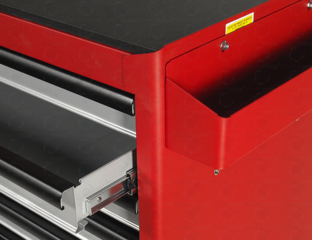 - Все ящики оснащены роликовыми направляющими, полностью выдвигаются и легко вынимаются из тележки.