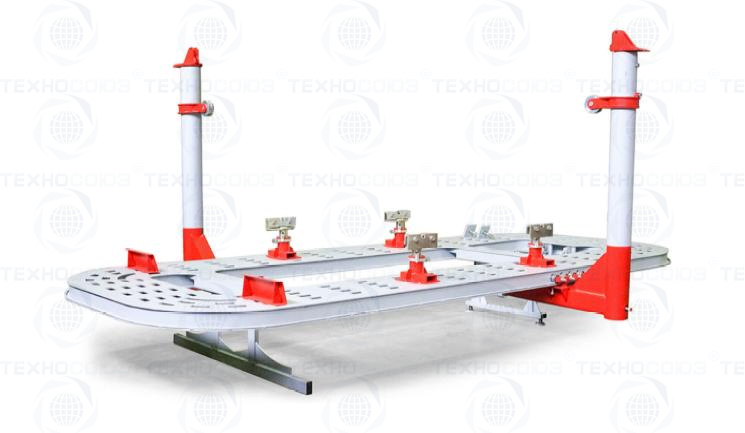 Две мощных силовых башни с тяговым усилием по 10 тонн, и с легко фиксирующимися креплениями, позволяющих быстро и эффективно прилагать усилия в различных направлениях, обеспечивают возможность работы с любой частью кузова в любых плоскостях. Полный разворот на 360- может обеспечить любой угол приложения усилия.